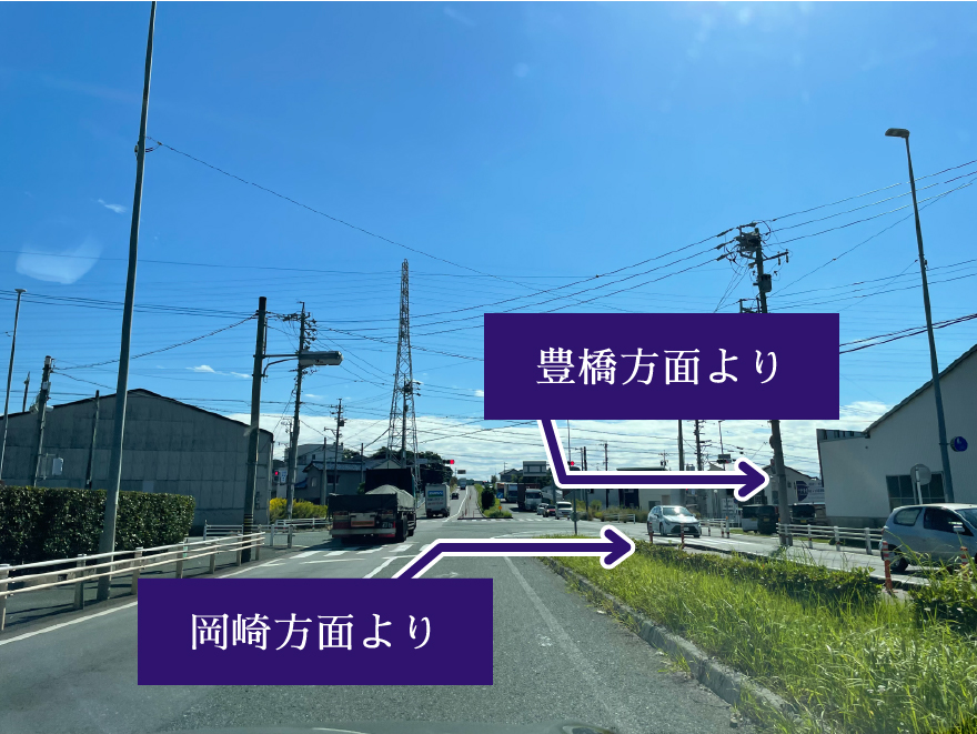 豊橋方面より:国道247号線「豊岡平田門」を左折。
